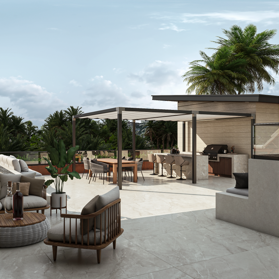 The community terrace offers a relaxed atmosphere for socializing with friends and neighbors. Amenities include an exterior garden, sports bar, covered terrace, BBQ area, swimming pool, jacuzzi, rooftop garden, cinema, game room, multipurpose room, patio, and gym, ensuring a balance of relaxation, productivity, and leisure.