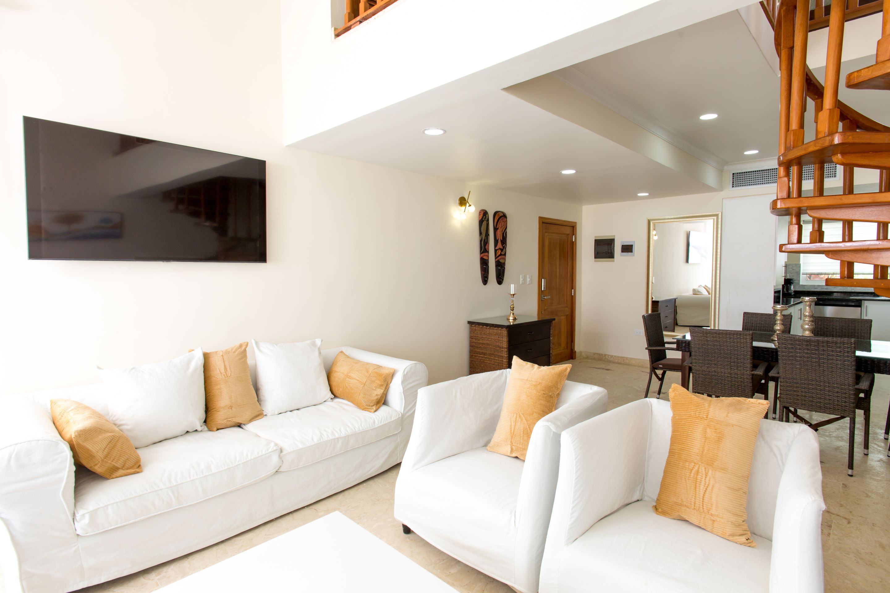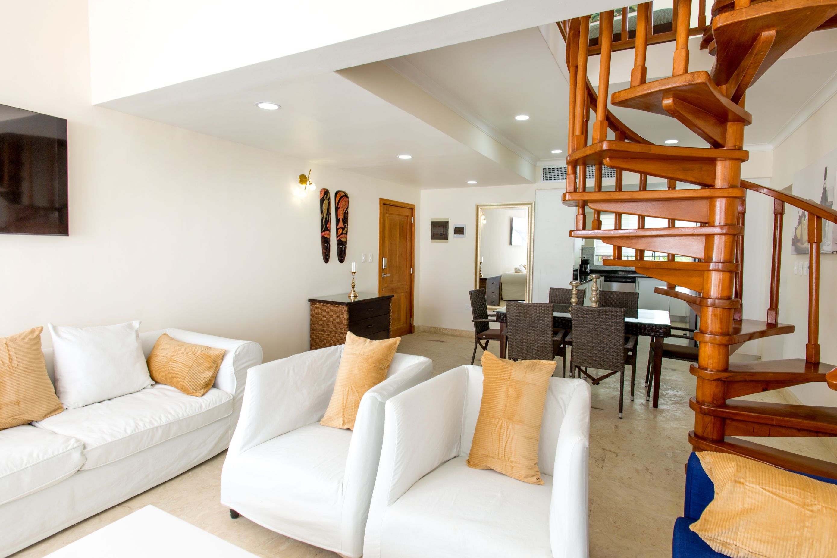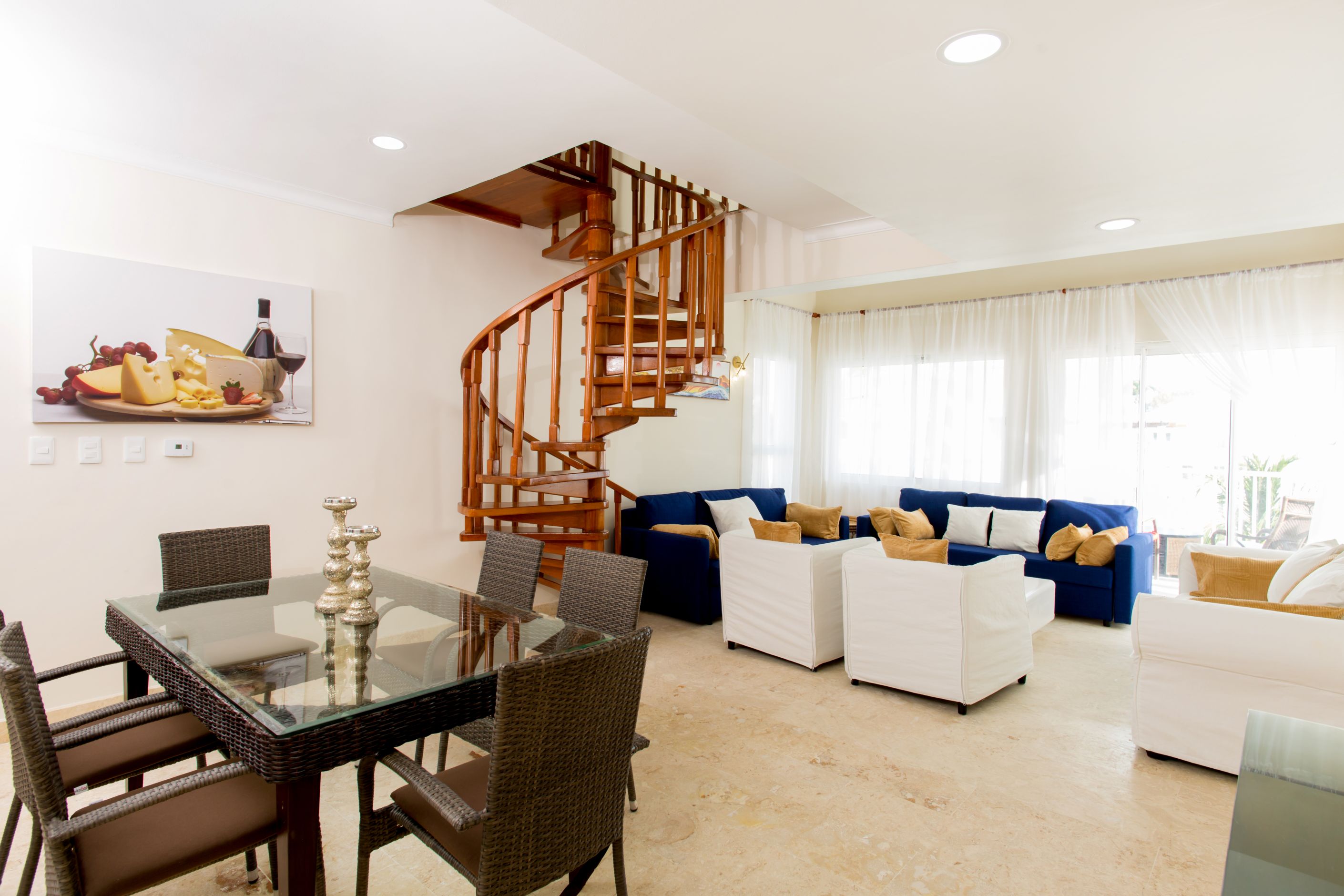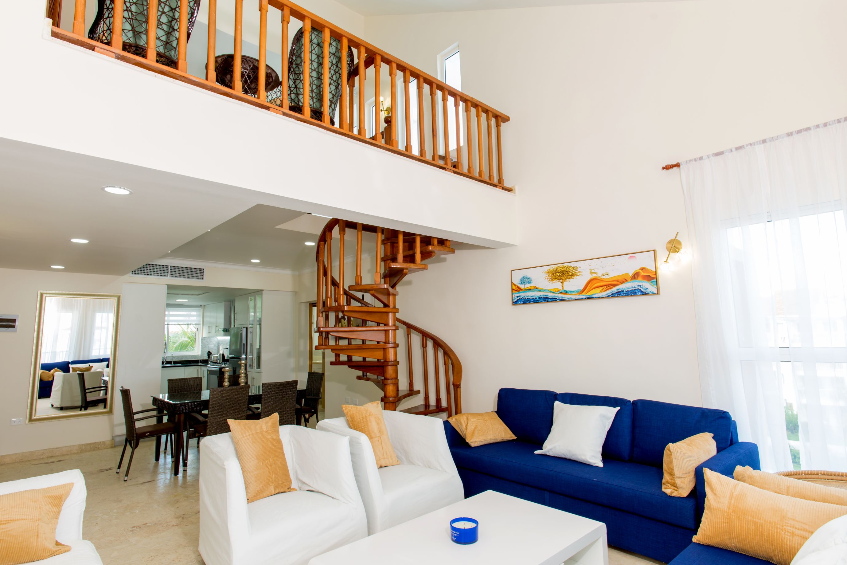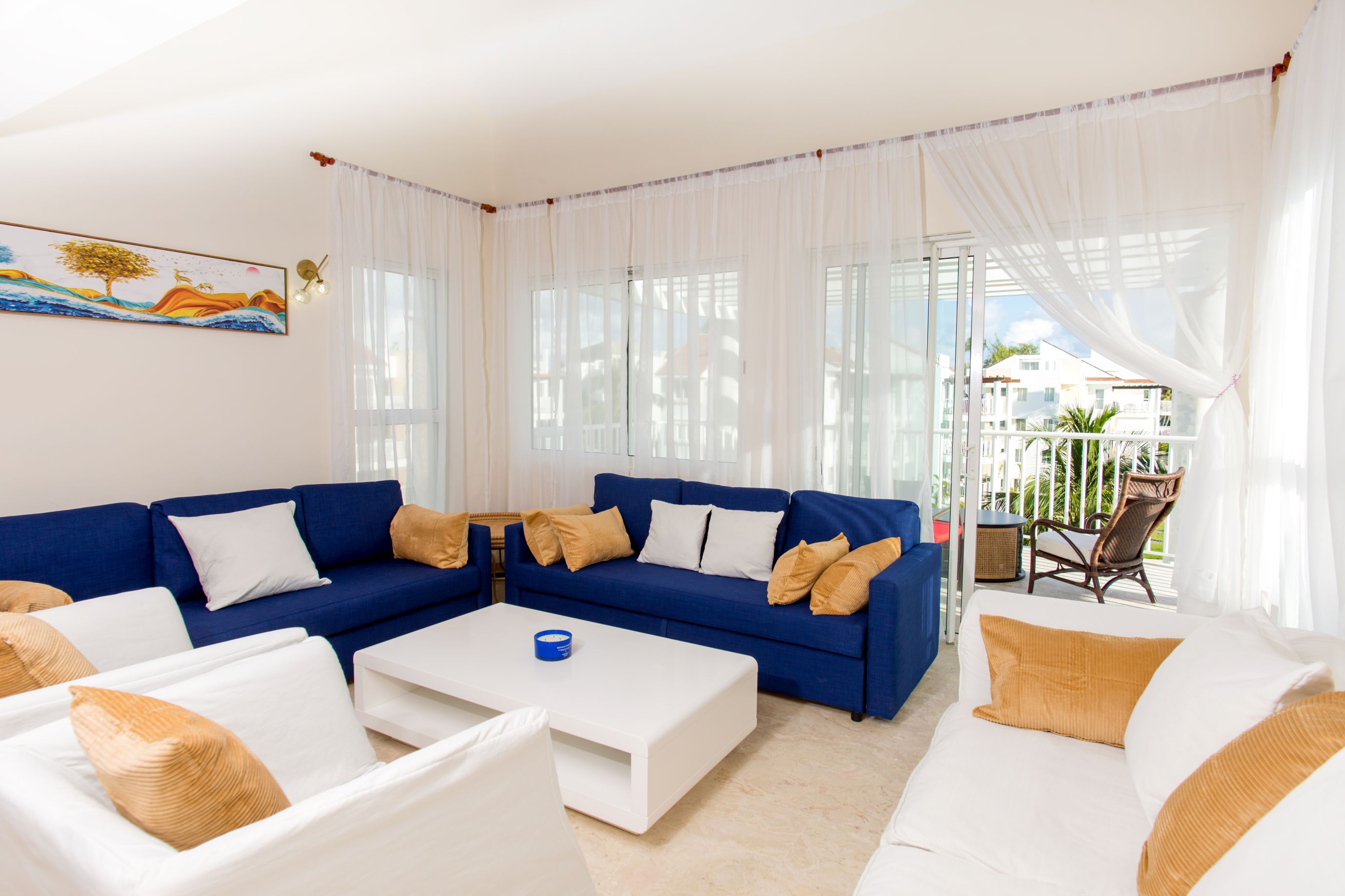 Experience luxury coastal living in this beautifully remodeled, fully furnished bi-level penthouse just steps from one of Bávaro's most gorgeous beaches. Designed for comfort and style, this spacious 4-bedroom residence offers breathtaking ocean views and is ideal for both long-term living and short-term vacation rentals.