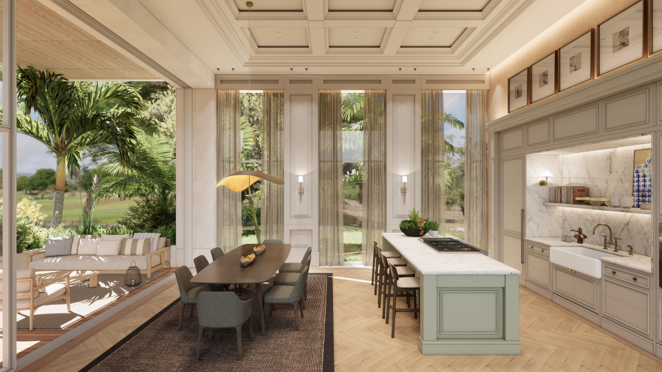 Material choices reflect timeless sophistication and understated luxury. Travertine, Coralina stone, natural wood, and hurricane-resistant aluminum create a sense of durability and elegance. Interior finishes emphasize texture, quality, and harmony with Cap Cana's climate, reinforcing a refined and enduring architectural identity.