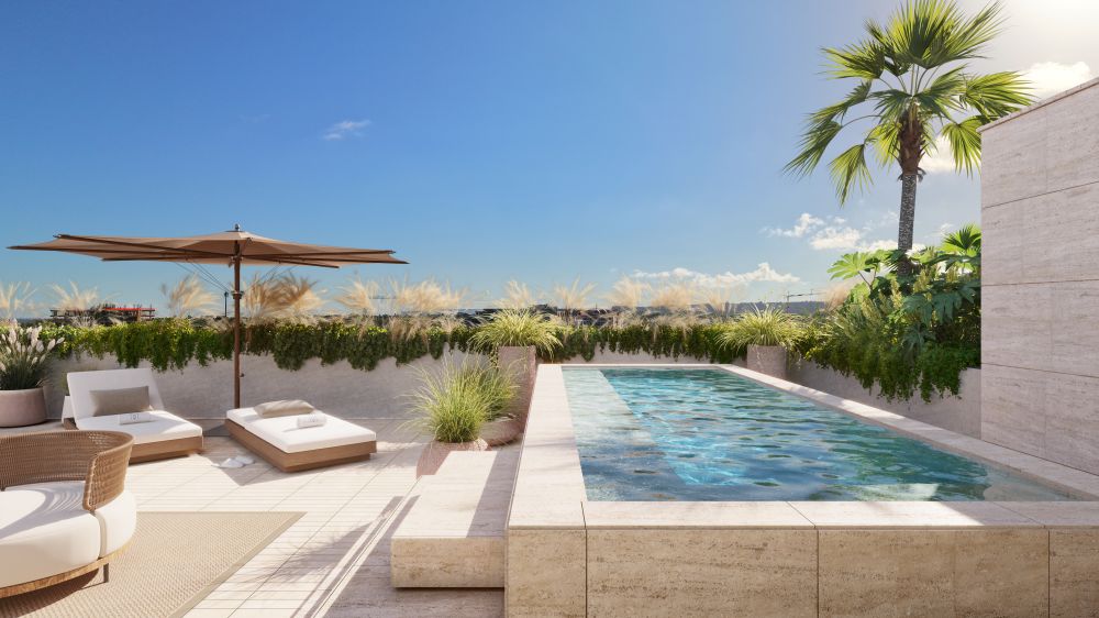 Penthouse homes offer private rooftop access via an internal staircase, complete with exclusive pools.