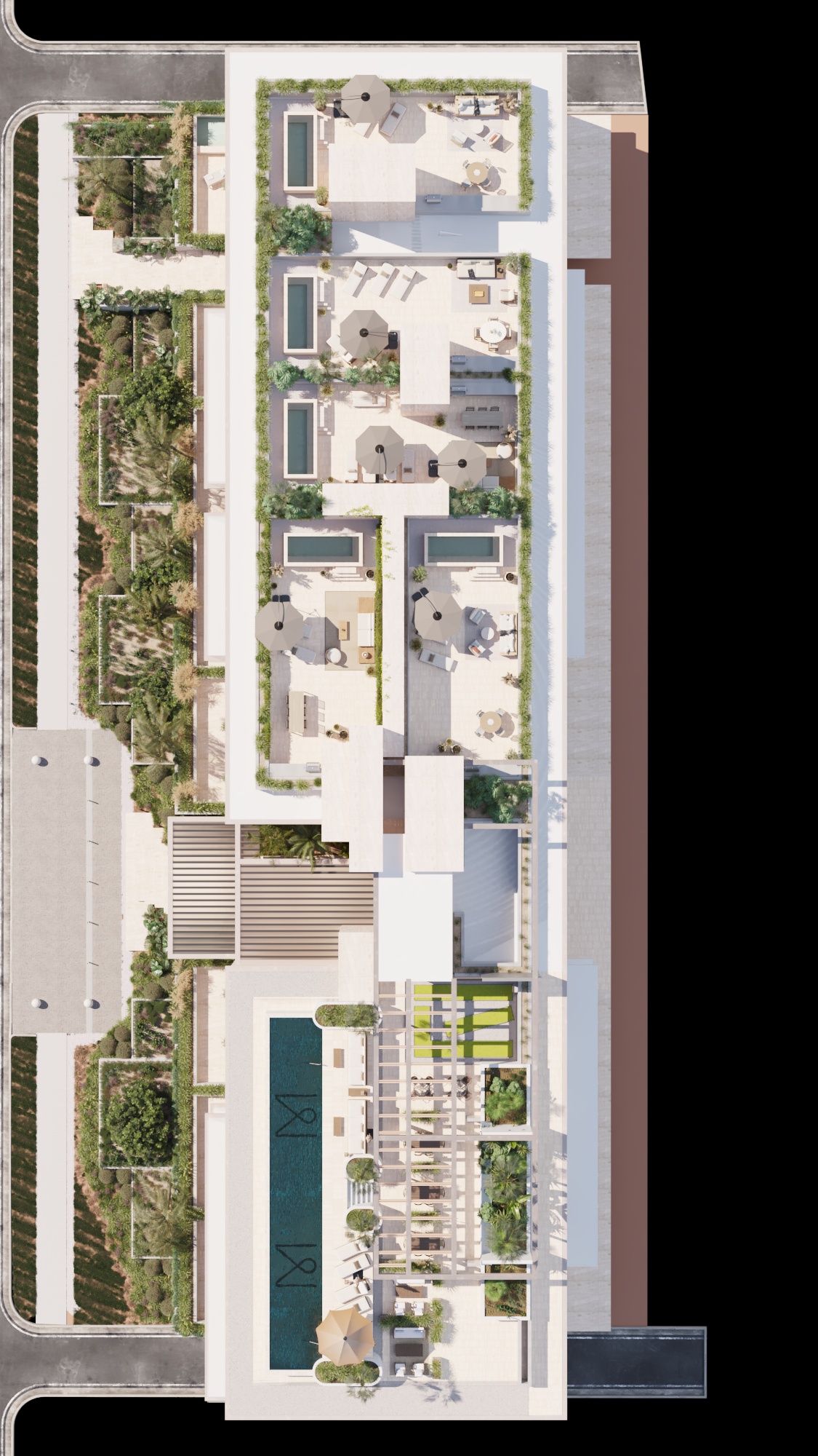 This limited collection of 1–2 bedroom residences, along with penthouses and expansive rooftop terraces, offers an intimate lifestyle defined by privacy, proportion, and thoughtful design. With construction beginning in Q3 2026 and delivery anticipated in Q4 2028, the project is crafted for those who value calm architecture, natural beauty, and effortless luxury.