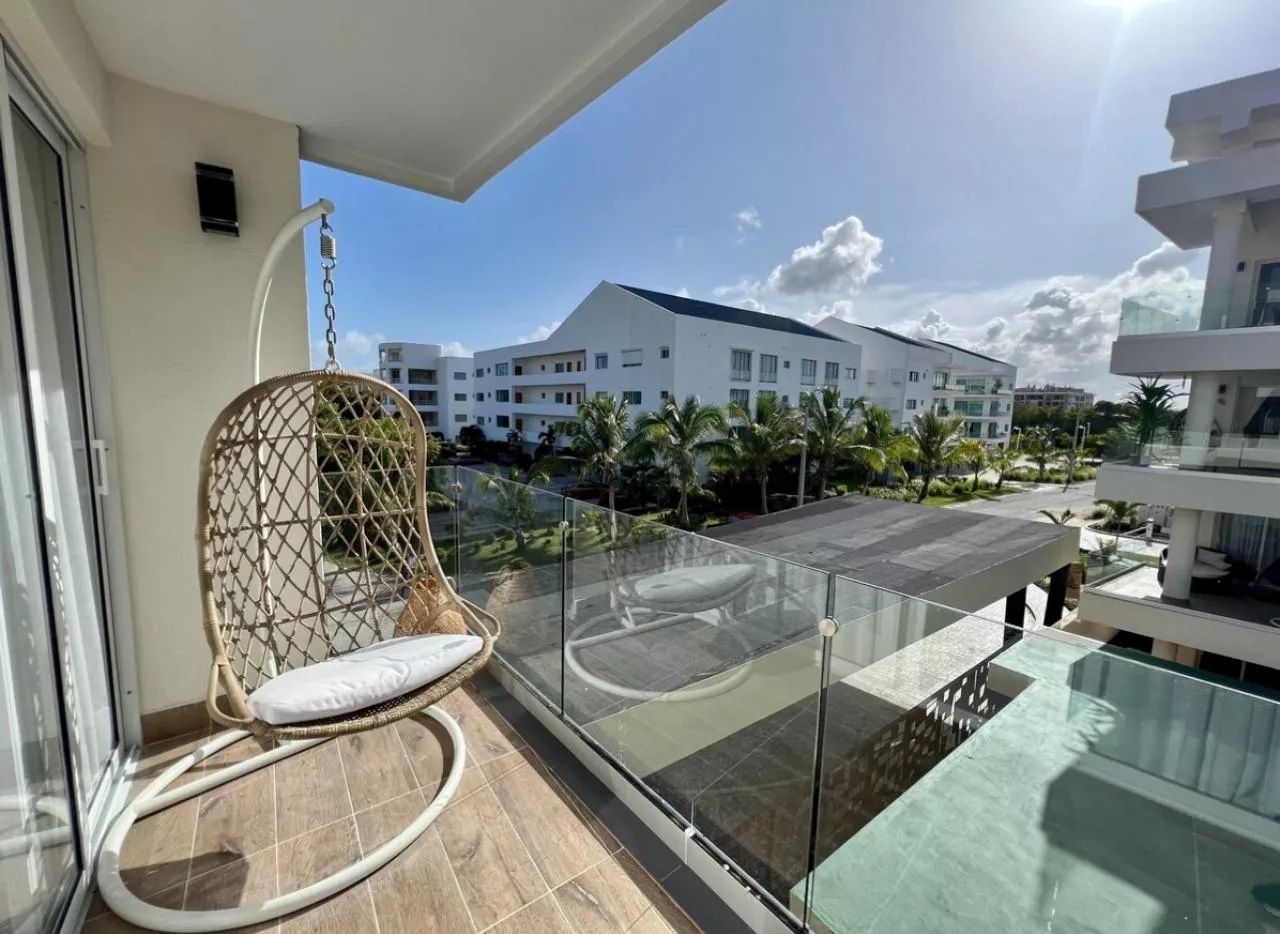 This apartment for sale in Las Cañas, Cap Cana is situated in Ciudad Las Cañas, La Arboleda, within the contemporary Jazz Lounge building, a residential project completed less than three years ago. Its strategic location places you just steps from the Las Cañas commercial area, providing convenient access to supermarkets, restaurants, boutiques, and everyday essentials.