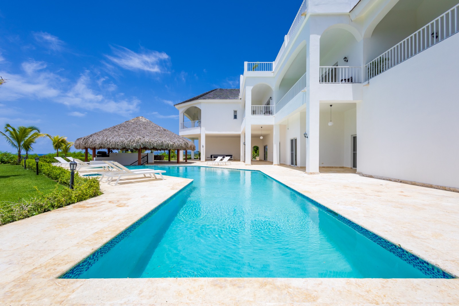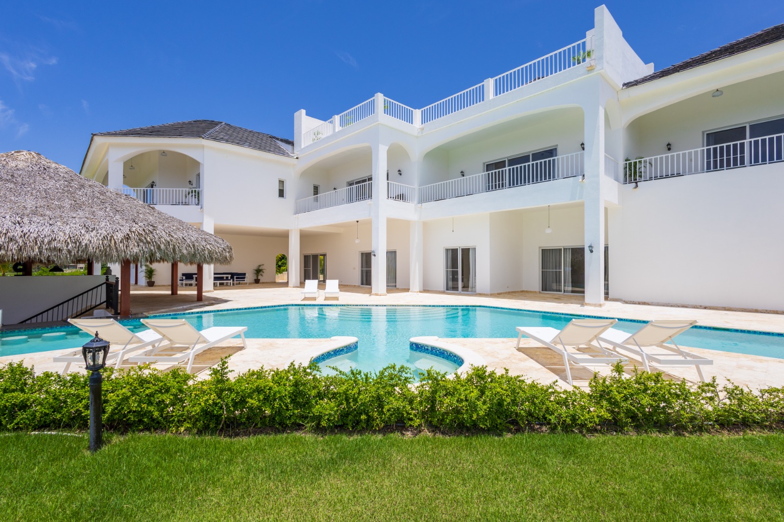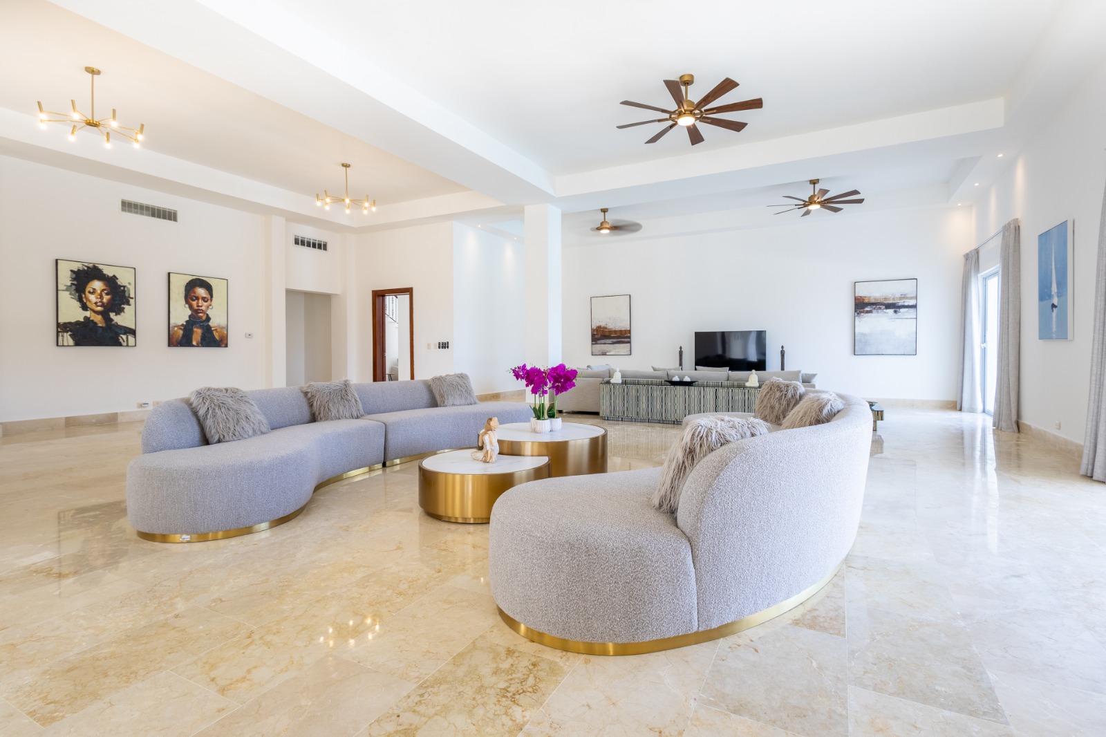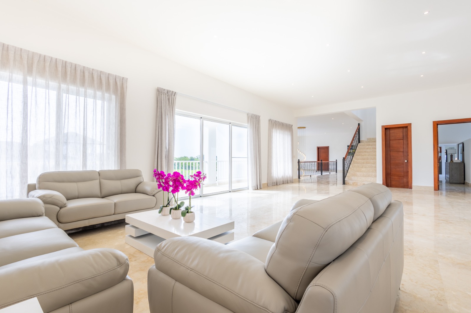 Welcome to an exceptional ocean- and golf-view estate in Cap Cana. Here, striking architecture meets tropical beauty and world-class amenities. Set on a prime 4,871 m² (52,431 sq. ft.) lot, the villa captures sweeping views of the Caribbean Sea and lush fairways. As a result, it raises the bar for luxury living.
