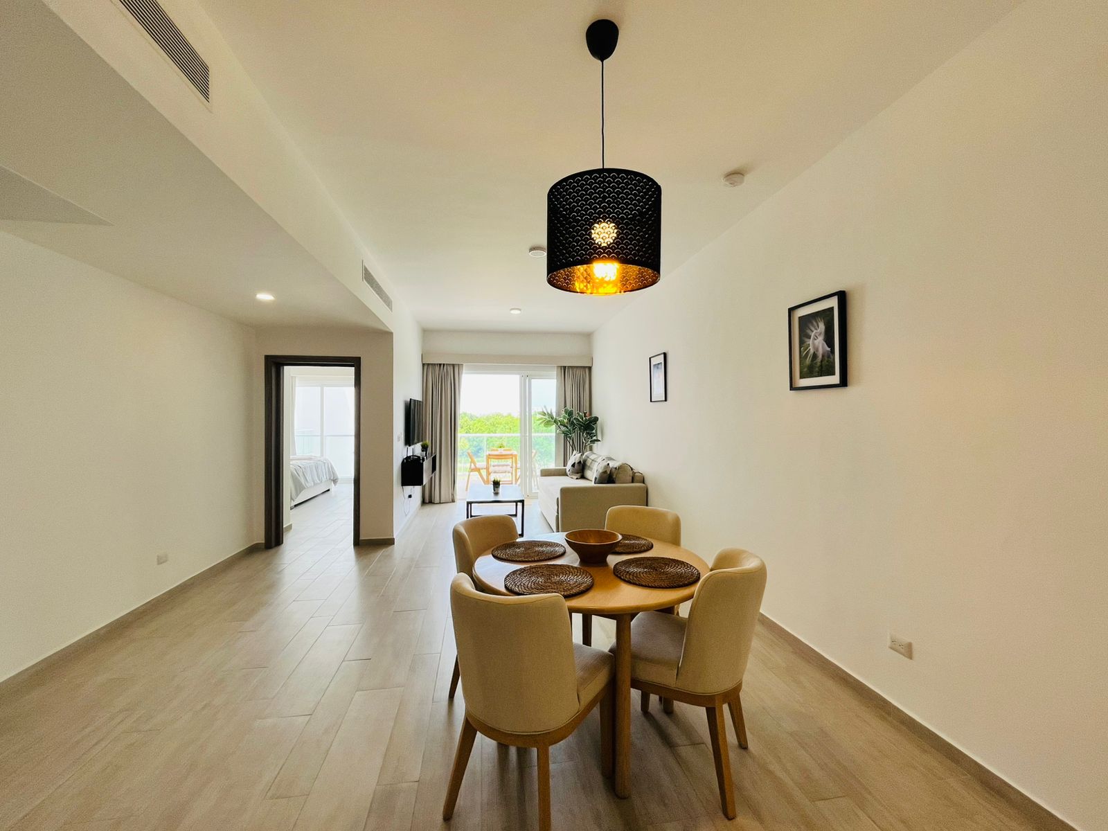 Located in a secure gated community, residents benefit from 24/7 security, beautifully maintained common areas, and a full range of resort-style amenities including swimming pools, fitness center, beach access, and on-site dining options nearby.