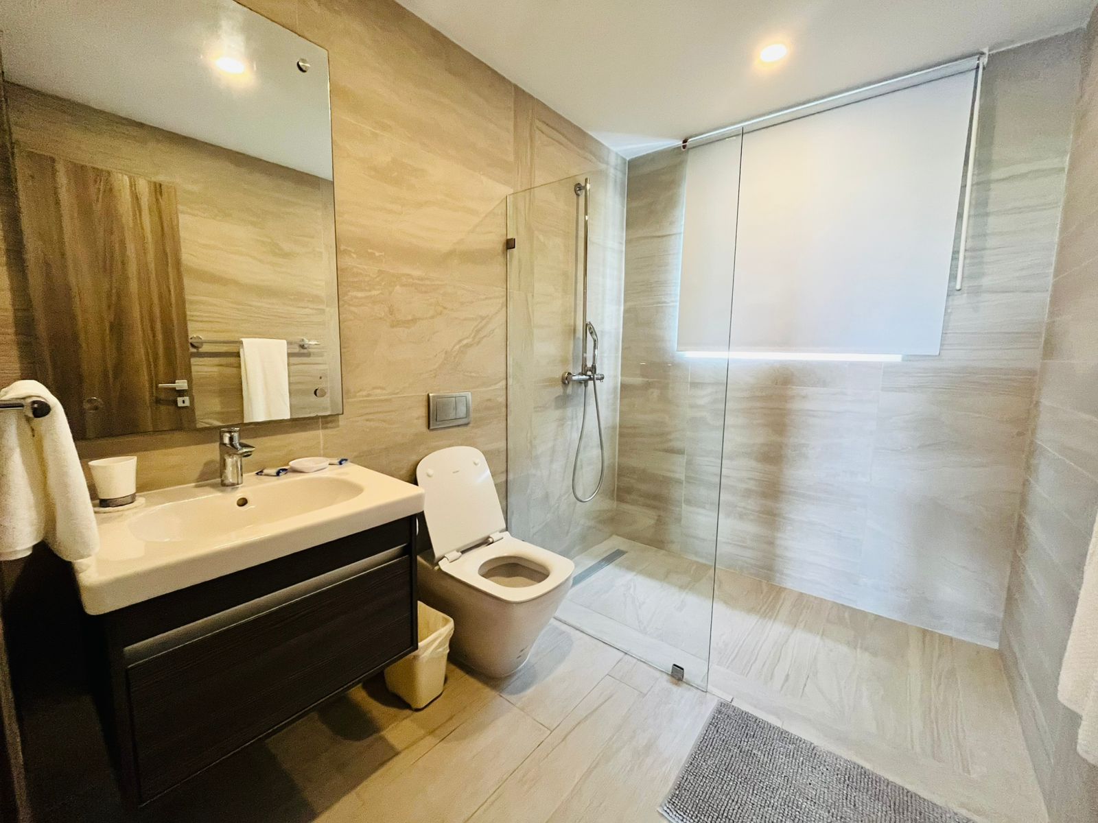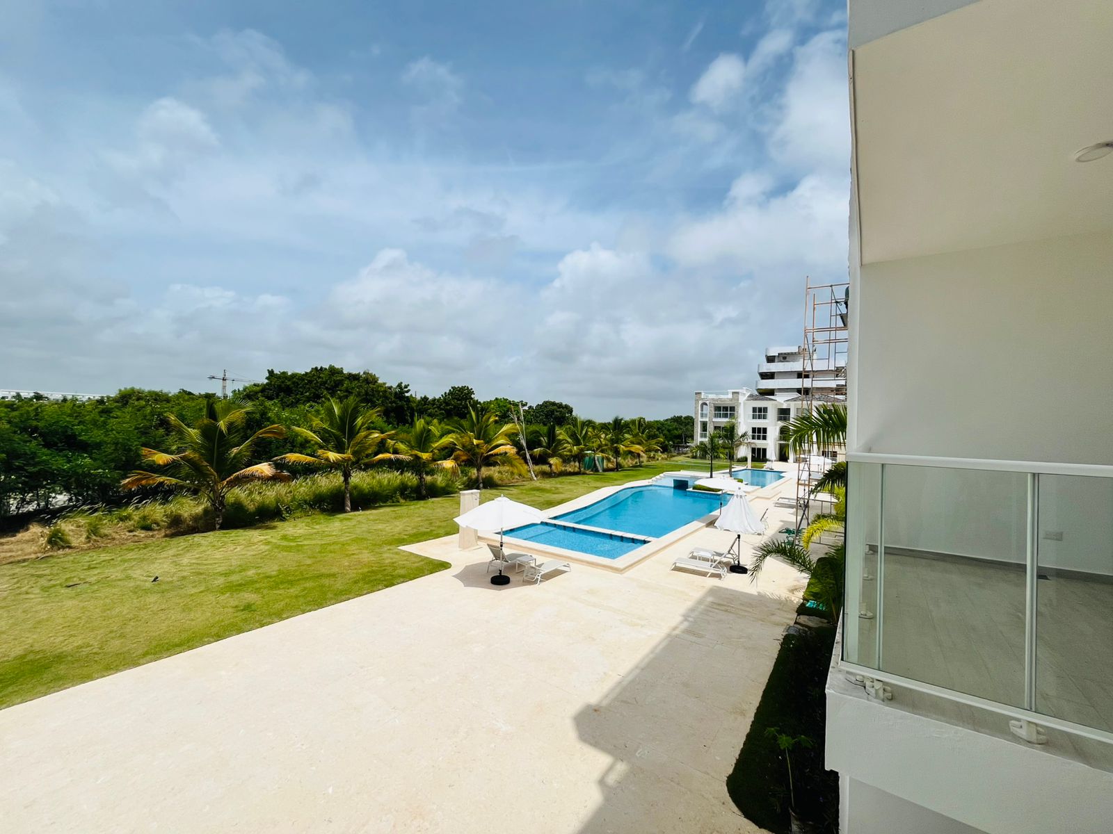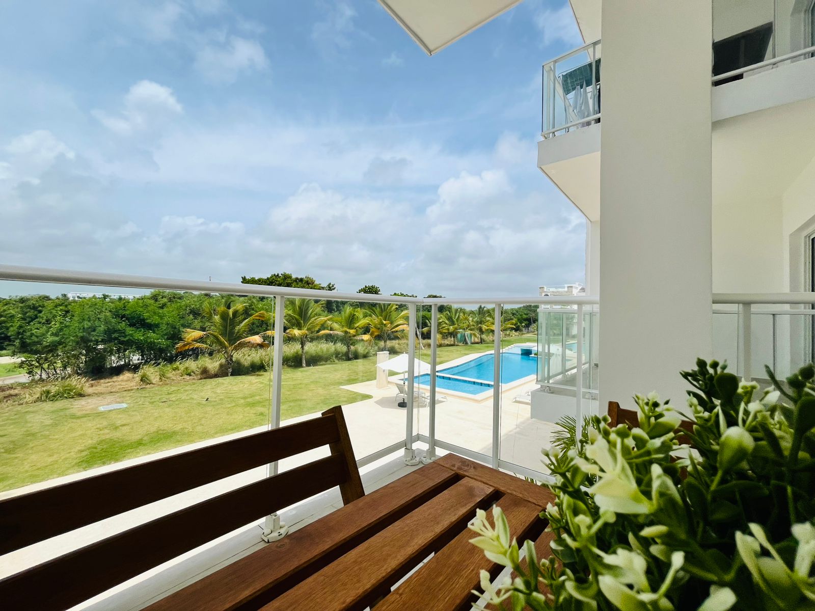 With 116.75 m² of interior space plus an 8.8 m² private balcony, the layout is spacious and well-designed, offering a bright and airy atmosphere throughout. The unit enjoys a lovely pool view, creating a relaxing tropical backdrop from the living area and balcony.