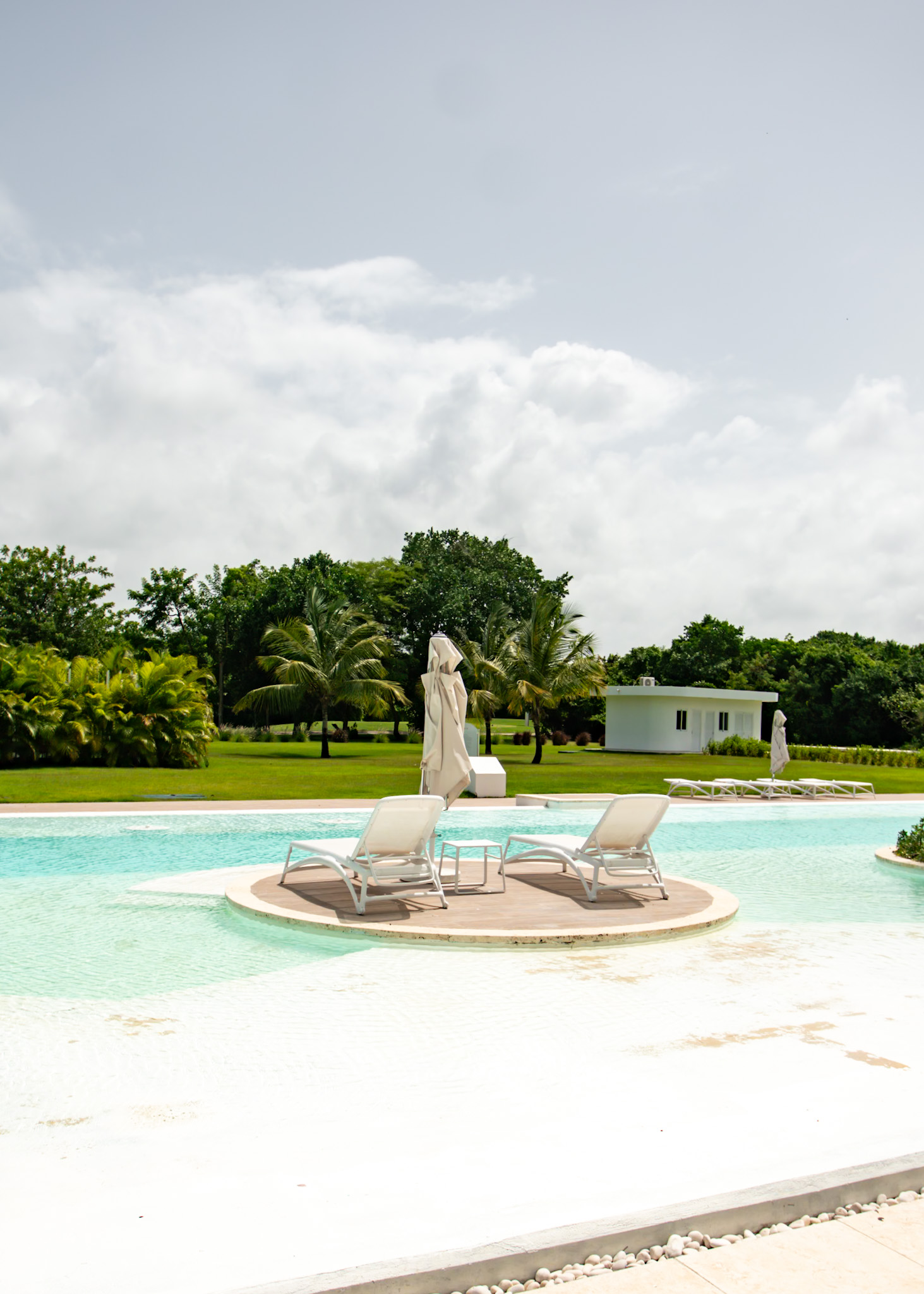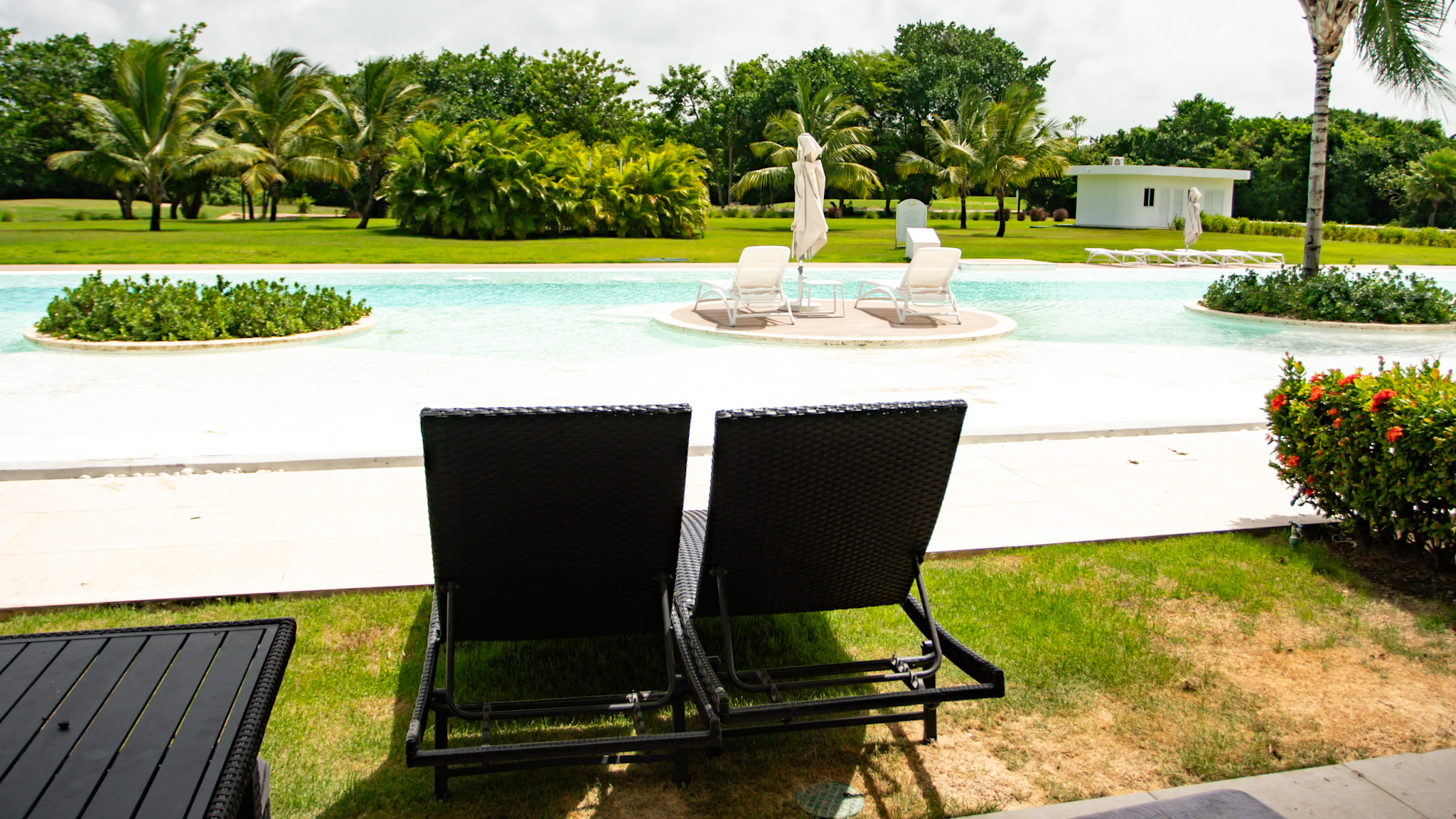 The area features resort-style amenities including multiple swimming pools, landscaped gardens, a fitness center, and on-site dining options. Owners also enjoy access to a private beach club with beachfront lounging, restaurant, and bar service. For golf enthusiasts, there is a nearby championship golf course just minutes away.